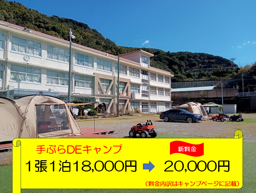 手ぶらDEキャンプのご利用料金を改正させてください・・・おねがいします